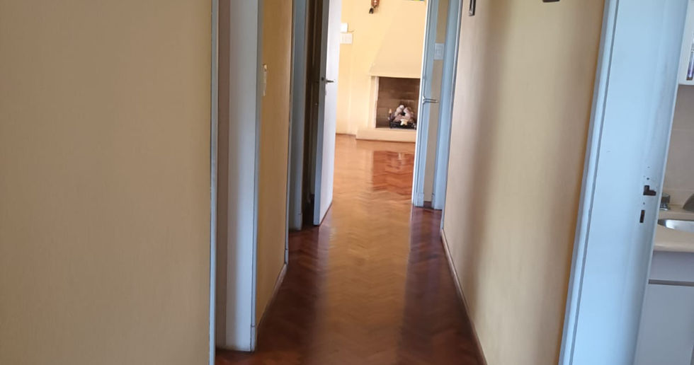 Living comedor, dos habitaciones, baño, cocina comedor, escalera que conduce a un departamento de un dormitorio con baño.